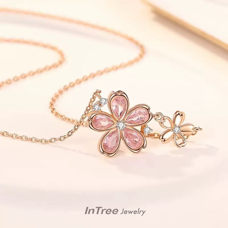 S925 Sterling Silver Sakura Design Necklace SET