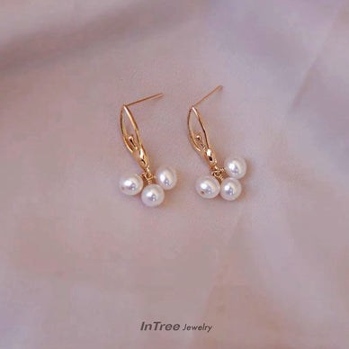 Three-Pearl Pendant Design Earring